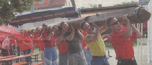 den im Schützenhaus gelagerten Kerwabaum zum Loheplatz zu transportieren.